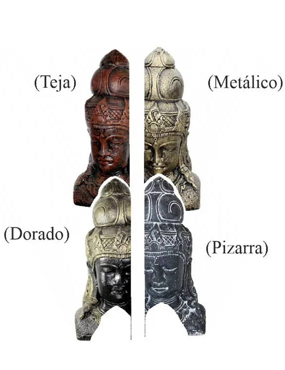 La figura Cabeza Oriental es un imponente busto de estilo oriental, diseñado para aportar un toque exótico y culturalmente enriquecedor a su jardín o espacio exterior. Fabricada en hormigón armado, esta pieza es excepcionalmente resistente a las inclemencias meteorológicas, lo que garantiza su durabilidad y la conservación de su estética en cualquier condición climática. Su diseño, inspirado en la rica cultura tailandesa, la convierte en un elemento decorativo distintivo, ideal para crear un punto focal de contemplación o para complementar un ambiente zen. Al ser un producto hecho de manera artesanal, cada Cabeza Oriental posee un carácter único, con ligeras variaciones que realzan su autenticidad y el valor del trabajo manual.