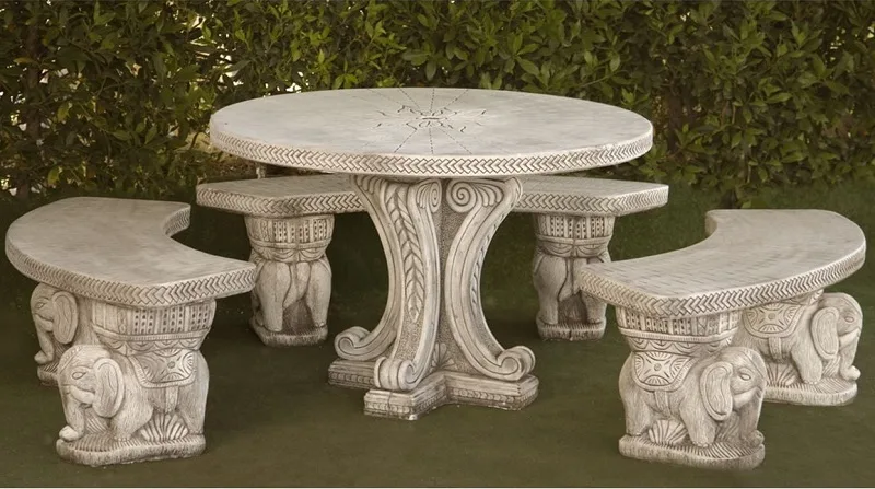 ✅ Material y Diseño: Piedra artificial de alta calidad con una estructura robusta y detalles de elefantes tallados. Ideal para resistir las inclemencias del tiempo.