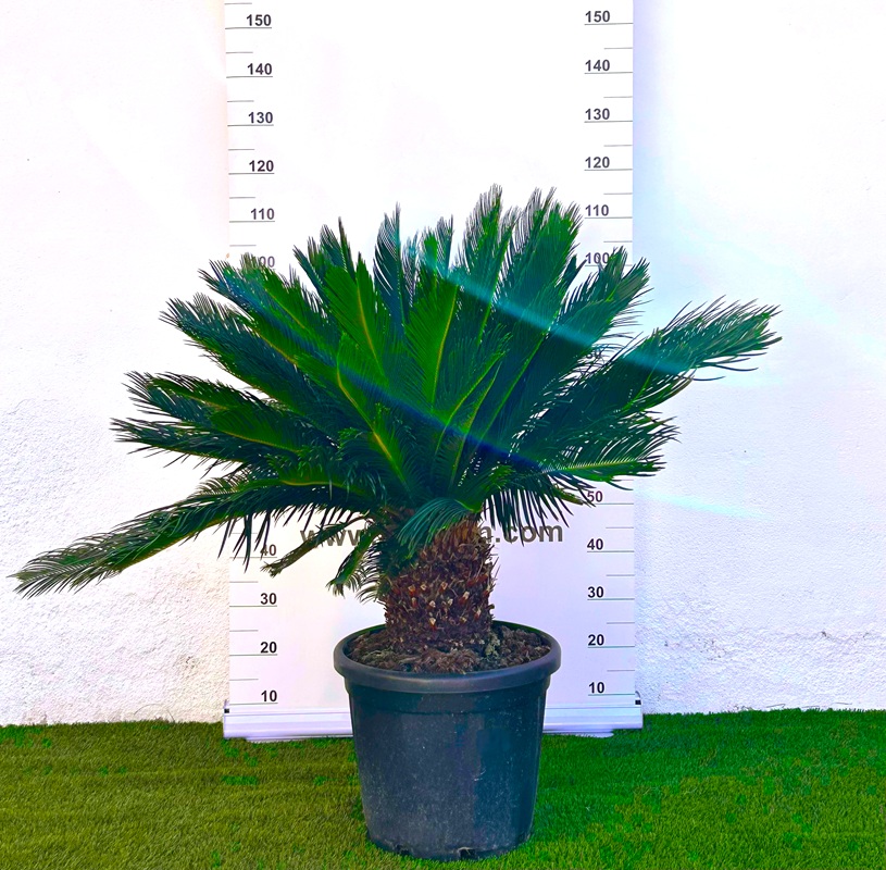 La Cyca revoluta, conocida popularmente como Palma del Sagú o Cica, es una de las plantas más antiguas y fascinantes del mundo, considerada un auténtico «fósil viviente». Aunque su aspecto recuerda al de una palmera, botánicamente pertenece al grupo de las cícadas. Destaca por su porte majestuoso y su crecimiento pausado, lo que la convierte en una pieza de gran valor para el paisajismo, aportando un aire exótico, prehistórico y de absoluta elegancia a cualquier entorno.
