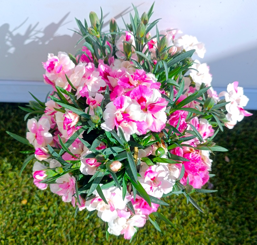 El Dianthus Pink & Proud es una variedad de clavelina moderna que destaca por su extraordinario vigor y la intensidad eléctrica de su color. Esta planta perenne ha sido seleccionada por su capacidad para florecer de manera incansable, cubriéndose de flores de un rosa neón vibrante que no pasa desapercibido en ningún jardín. Su porte es naturalmente compacto y esférico, lo que evita que la planta se “abra” con el tiempo, manteniendo siempre un aspecto pulcro y frondoso. Su follaje lineal de color verde es el contraste perfecto para sus flores de bordes festoneados, convirtiéndola en la opción predilecta para maceteros modernos, borduras de impacto y balcones donde se busque un toque de color audaz y duradero.
