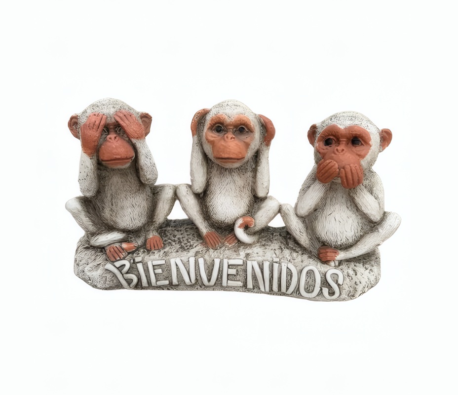 ✅ Diseño Divertido: Trío de monos con cartel de bienvenida y acabado detallado.