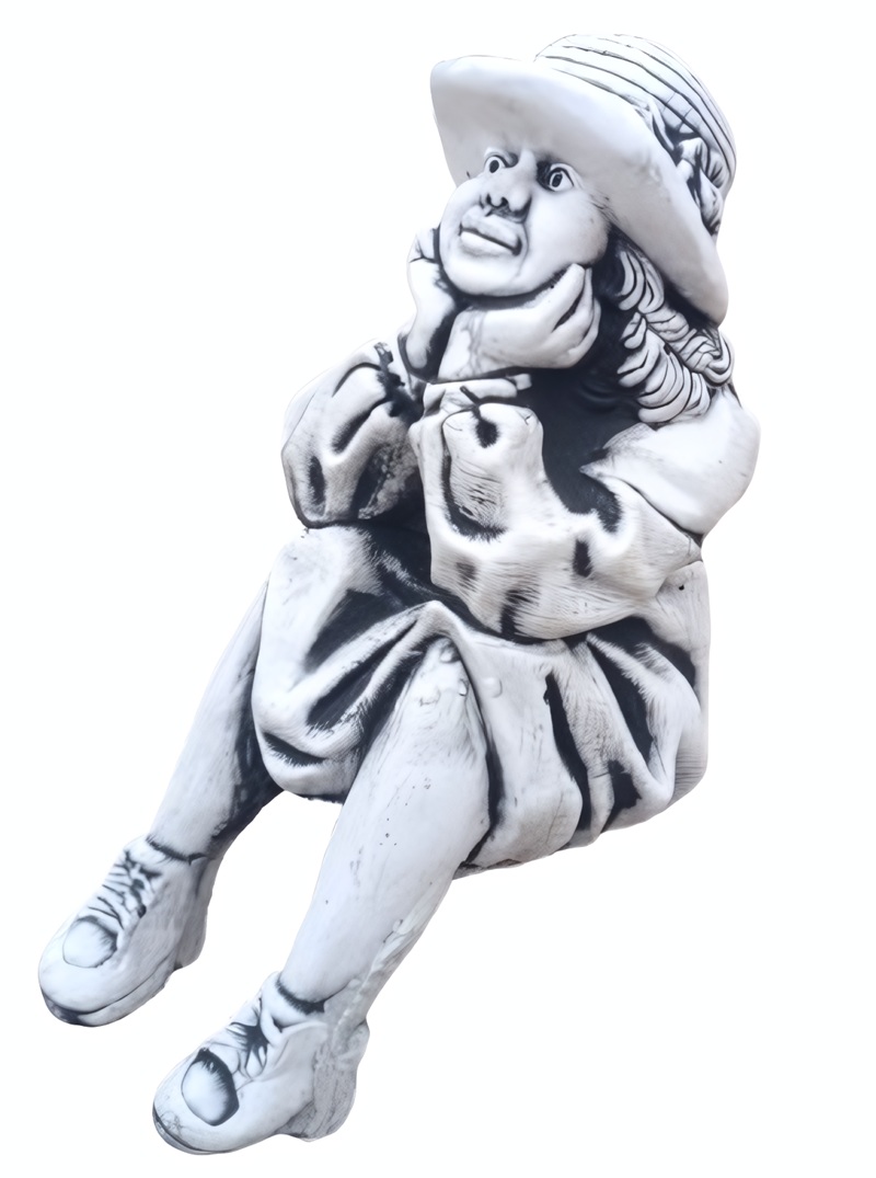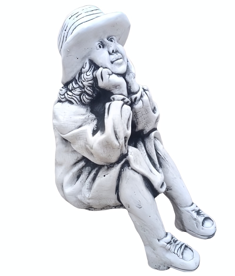 La figura Niña con Sombrero Sentada es una pieza ornamental de gran delicadeza y valor artístico, diseñada para aportar una atmósfera de serenidad y nostalgia a cualquier entorno. Su diseño captura con elegancia la figura de una niña en una postura de descanso, destacando el realismo en los pliegues de su vestimenta y el detalle de su sombrero de ala ancha. Fabricada en piedra artificial de alta densidad, esta escultura ofrece una solidez excepcional, siendo capaz de resistir la exposición directa a la intemperie, la lluvia y las heladas persistentes sin degradación estructural. El acabado manual en tono ceniza proporciona una profundidad visual única, resaltando cada relieve y convirtiendo la pieza en un punto focal sofisticado para jardines clásicos, terrazas o recibidores.