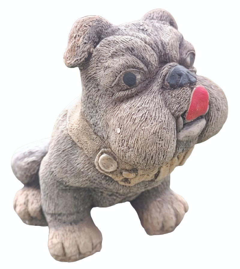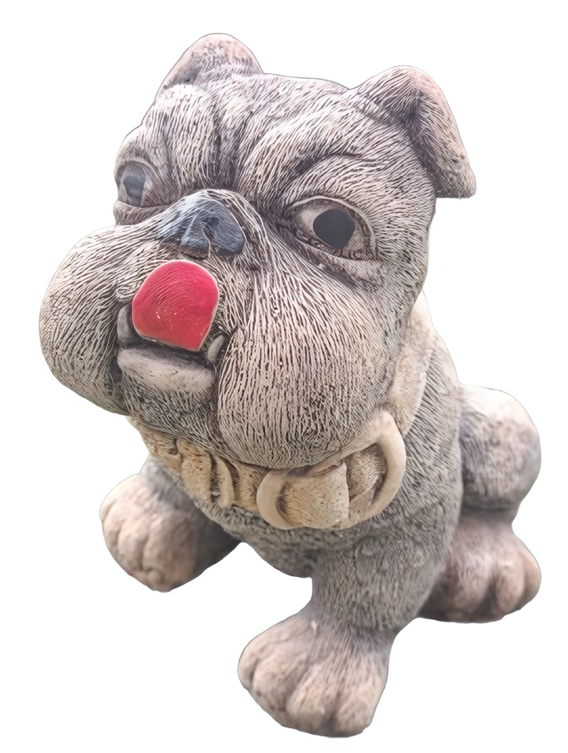 La figura Perrito Mofletes Bulldog Inglés es una escultura decorativa que destaca por su carácter y realismo, ideal para los amantes de esta emblemática raza. Su diseño captura con precisión la fisonomía robusta del Bulldog, resaltando especialmente los pliegues de su rostro y la expresión noble que lo caracteriza. Fabricada en piedra artificial de alta densidad, esta pieza ofrece una resistencia extraordinaria a la intemperie, siendo capaz de soportar la radiación UV, la humedad y las heladas sin perder detalle. Gracias a su acabado artesanal, la escultura presenta una textura que imita la piedra natural envejecida, integrándose de forma impecable en entradas, terrazas o como un guardián silencioso en los rincones más especiales de su jardín.