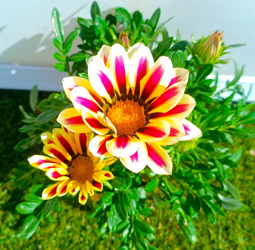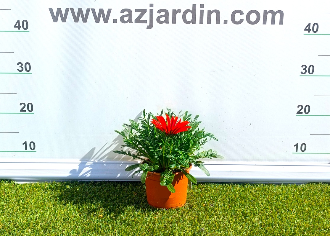 La Gazania es una planta perenne (cultivada frecuentemente como anual en climas fríos) originaria de Sudáfrica, mundialmente apreciada por su espectacular y colorida floración. Sus flores, similares a margaritas de gran tamaño, se presentan en una vibrante gama de colores que van desde el amarillo brillante y el naranja intenso hasta el bronce, rosa y blanco, a menudo con anillos concéntricos oscuros que realzan su belleza. Una de las características más curiosas de la gazania es que sus flores se abren completamente con el sol y se cierran al atardecer o en días nublados. Con su follaje denso de color verde y su porte bajo y tapizante, es la opción perfecta para añadir estallidos de color duradero en rocallas, borduras, jardineras de balcón y zonas del jardín con gran exposición solar.
