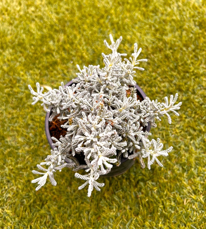 ✅ Cuidado y Mantenimiento: Requiere una exposición a pleno sol para mantener su forma compacta y su coloración plateada. Necesita suelos muy bien drenados y riegos escasos una vez establecida, siendo muy sensible al exceso de humedad.