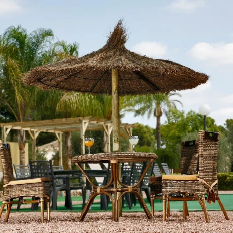 Sombrilla de brezo ideal para proporcionar sombra en tu jardín, piscina o áreas exteriores. Su diseño natural y resistente la hace perfecta para su uso en comunidades, chiringuitos de playa, entre otros.