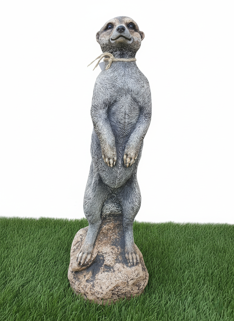 Esta imponente figura decorativa de un suricato grande es la elección ideal para dar un toque elegante y realista a tu jardín o espacio exterior. Su robusta estructura, elaborada en piedra artificial, le confiere un aspecto natural y una gran durabilidad, convirtiéndola en una pieza perfecta para destacar en cualquier rincón del hogar.