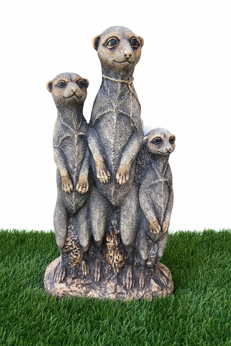 Esta encantadora figura decorativa de suricatos en trío de pie es perfecta para añadir un toque divertido y único a tu jardín o espacio exterior. Su robusta estructura, elaborada en piedra artificial, no solo ofrece una gran estabilidad, sino también un diseño que destaca en cualquier rincón del hogar.