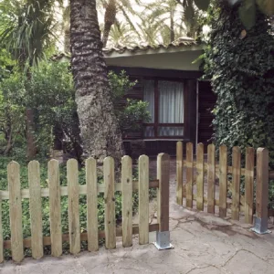 La Valla Clásica de Madera, con unas dimensiones de 100 x 210 cm, es una solución robusta y estética ideal para delimitar áreas o cercar zonas específicas de su jardín, aportando un encanto rústico y una funcionalidad duradera. Está fabricada en madera de pino tratada, lo que le confiere una mayor resistencia a la intemperie y una prolongada vida útil en exteriores. Su diseño clásico de lamas verticales se integra armoniosamente en cualquier entorno paisajístico, ofreciendo tanto un límite físico como un elemento decorativo. Además de su uso como cercado, esta valla es perfecta para crear privacidad, o incluso como soporte para plantas trepadoras, realzando la belleza natural de su espacio exterior.