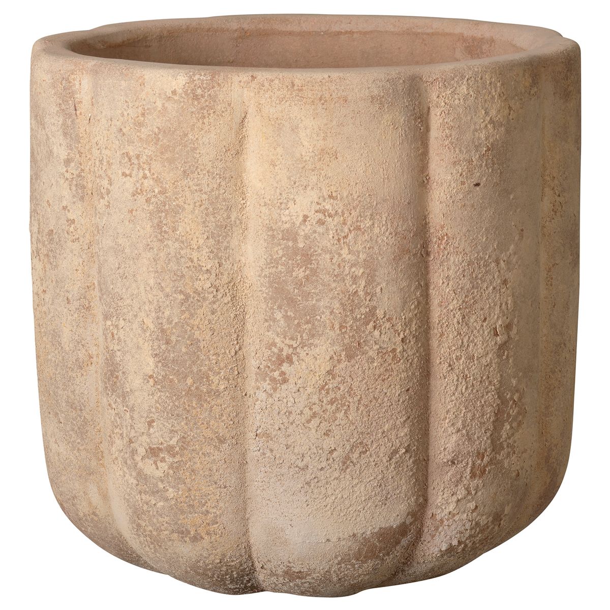 El Vaso Pumpkin Antique es una pieza de alfarería excepcional que fusiona un diseño orgánico con una presencia imponente. Fabricado a mano en terracota natural, su estructura destaca por las marcadas estrías verticales que emulan la forma de una calabaza, transformándose en una pieza decorativa única que aporta un carácter rústico y atemporal a cualquier espacio exterior o interior. Su fabricación artesanal garantiza no solo una estética exclusiva, sino también una estructura robusta con una capacidad de sustrato optimizada para el desarrollo de plantas de porte medio. Al ser terracota natural, el material es altamente transpirable, facilitando una gestión térmica orgánica y una oxigenación radicular que permite que sus plantas crezcan sanas y fuertes.